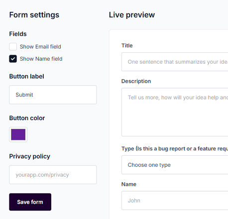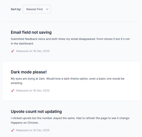 The simple feedback tool for indie founders. Give your users a place to share feedback, vote on ideas, and see what you're building.